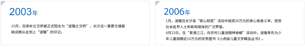 從創業生存到百花齊放,從企業的本能生長到高速發展,再到全面升級,波隆始終與時代共進步。基于企業公民精神,波隆致力于讓更多的人共享美好生活,持續投身公益活動,將愛心與善意向社會傳遞。