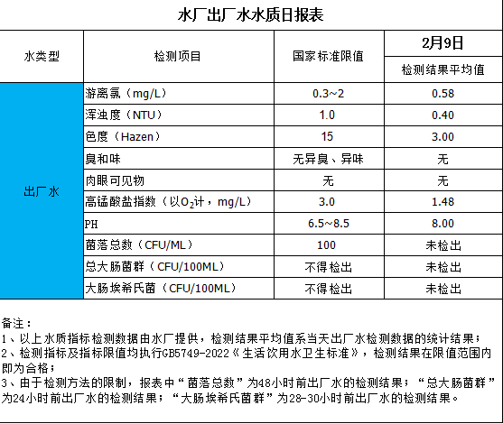 水廠出廠水水質(zhì)日報表(2025-2-9)