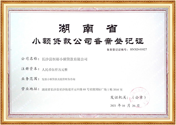 長沙縣恒裕小額貸款有限公司于2012年3月29日設立,經營范圍主要為家電批發零售流動貸款;國家政策允許的農村家電消費貸款;“三農”和中小企業需求的金融業務;為中小企業發展、管理、財務等咨詢業務及其他經批準的業務。多年來,一直
